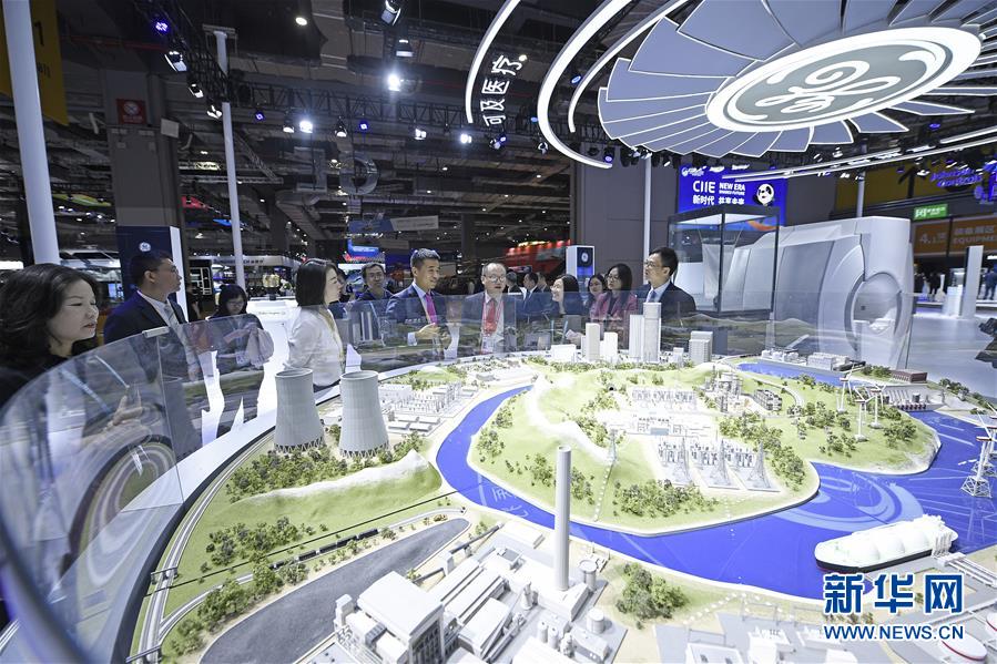 11月5日,觀眾在美國(guó)通用電氣展位參觀。新華社記者王鵬攝