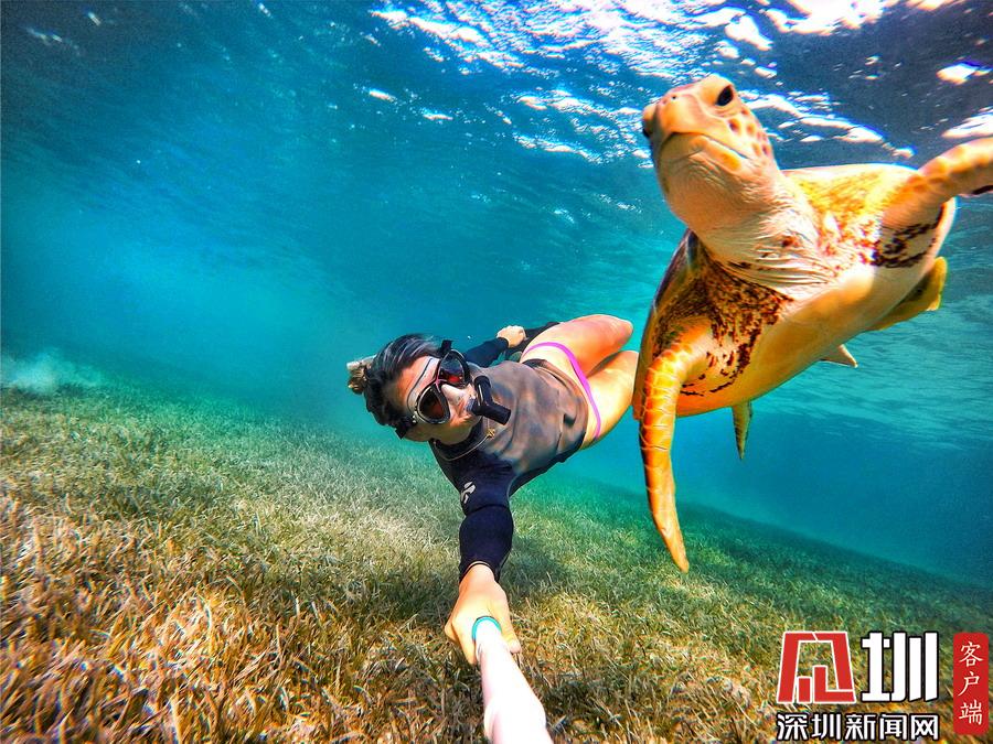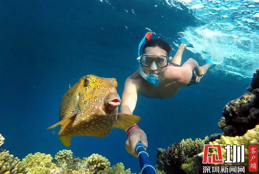 017年8月4日報(bào)道(具體拍攝時(shí)間不詳),白俄23歲女子Vladislav Starastsenka在埃及沙姆沙伊赫水域潛游時(shí)邂逅一條可愛的盒子魚,這家伙看到Vladislav在自拍后立即湊上前去露了一臉,對著鏡頭嘟嘴賣萌,畫面十分搞笑。