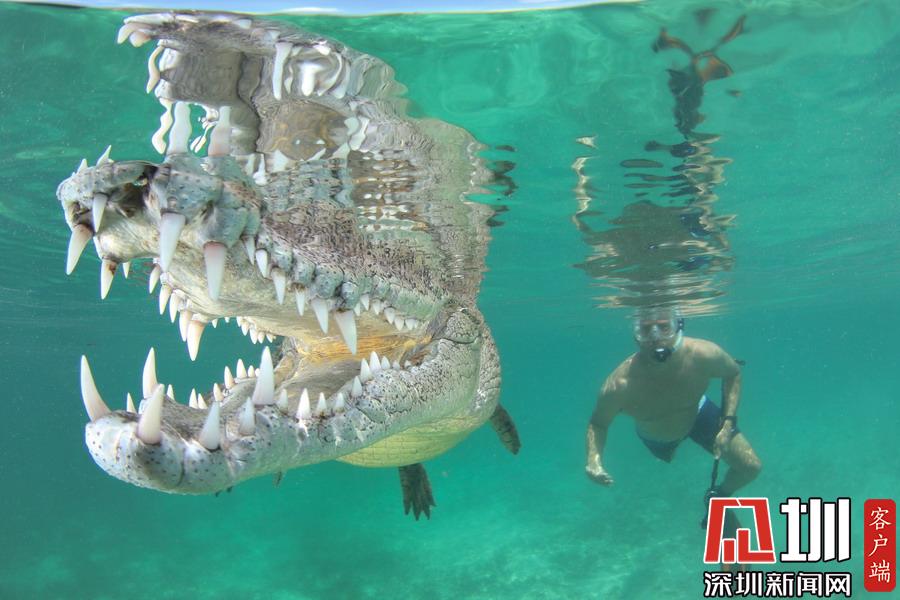 2018年7月16日報(bào)道(具體拍攝時(shí)間不詳),在墨西哥Chinchorro Banks水下,這些鱷魚們艷福可不淺,它們有機(jī)會(huì)同美女模特在水下同游。鏡頭里,它們露出獠牙鋸齒,看上去就像是開心大笑的樣子,想必是和美女同游才如此樂得合不攏嘴。而能敢于直面這些兇殘的肉食性動(dòng)物,這些美女模特也顯得是勇氣十足,令人欽佩。攝影師Ken Kiefer拍攝了這些震撼畫面。