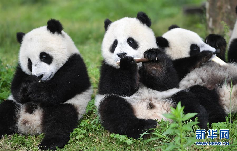 5月26日在位于四川臥龍國(guó)家級(jí)自然保護(hù)區(qū)的中國(guó)大熊貓保護(hù)研究中心臥龍神樹坪基地拍攝的大熊貓。 新華社記者 薛玉斌 攝