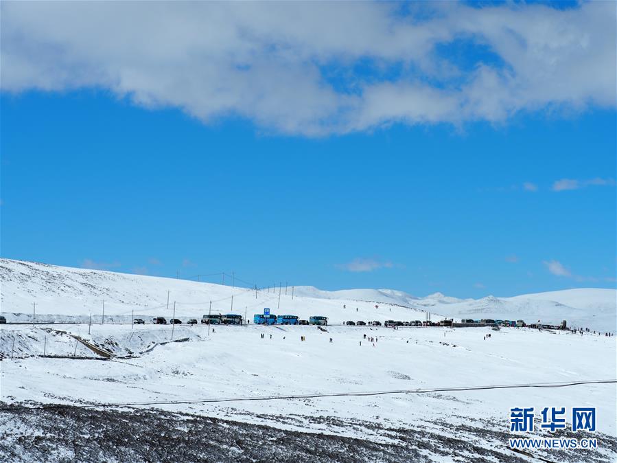 10月17日,在川藏線高爾寺山至理塘路段,成隊(duì)的車輛停在觀景臺(tái)附近。新華社記者王迪攝