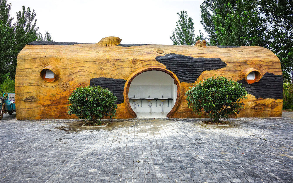 2016年8月8日,安徽淮北,一所酷似大樹(shù)干的藝術(shù)造型公廁,亮相于淮北段園鎮(zhèn)大莊村葡萄采摘園里,引來(lái)很多市民的關(guān)注。吳克濤/視覺(jué)中國(guó)