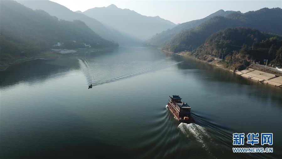 這是11月16日無人機(jī)拍攝的新安江山水畫廊。