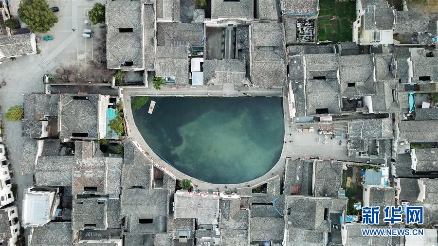 這是11月15日無人機拍攝的宏村月沼晨景。新華社記者韓曉雨攝