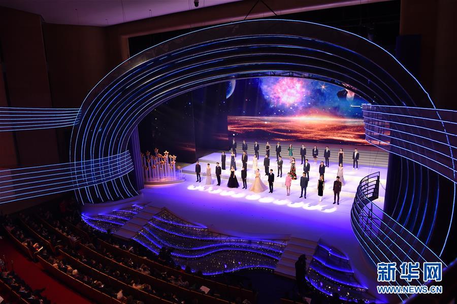 11月19日,演員代表在第28屆中國金雞百花電影節(jié)開幕式上演唱歌曲《星辰大?!?。新華社記者姜克紅攝