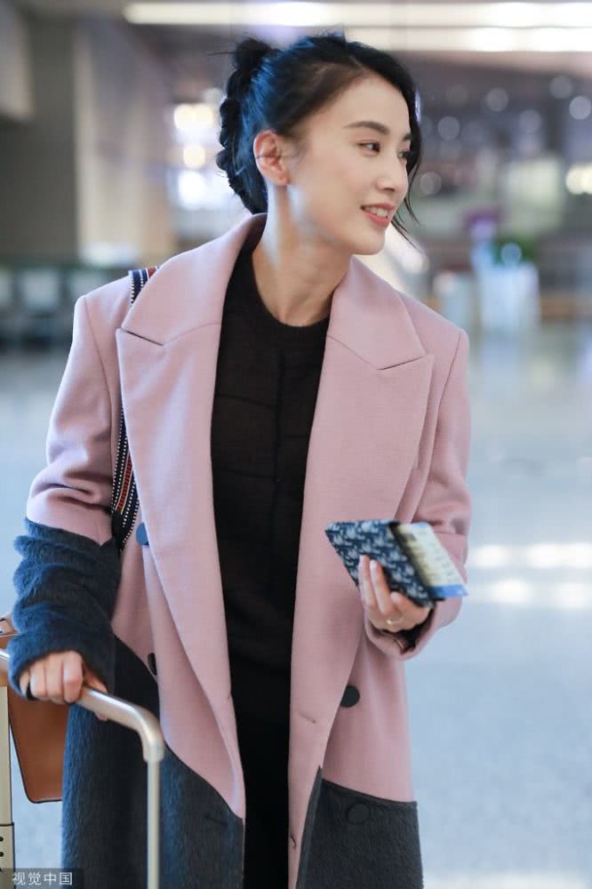 她穿大衣皮靴推行李箱滿滿商務(wù)范,扎小辮子五官清麗氣質(zhì)優(yōu)雅。