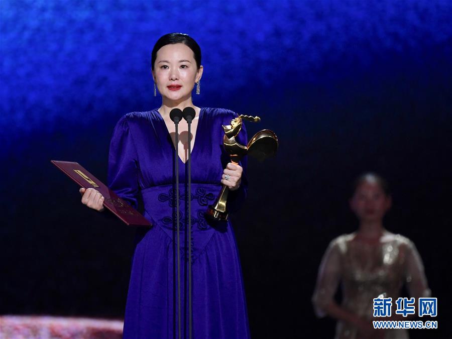 11月23日,電影《地久天長》主演詠梅獲得最佳女主角獎。當(dāng)日,第32屆中國電影金雞獎頒獎典禮在福建廈門舉行。新華社記者姜克紅攝