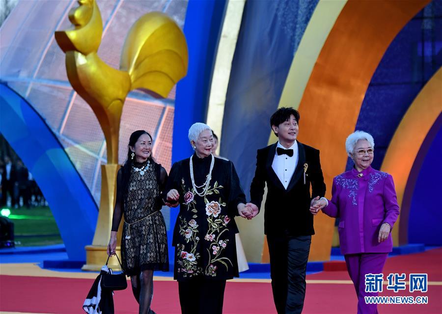 11月23日,田華(右一)、盧燕(左二)等在紅毯儀式上。當日,第28屆中國金雞百花電影節(jié)紅毯儀式在福建廈門舉行。新華社記者張國俊攝