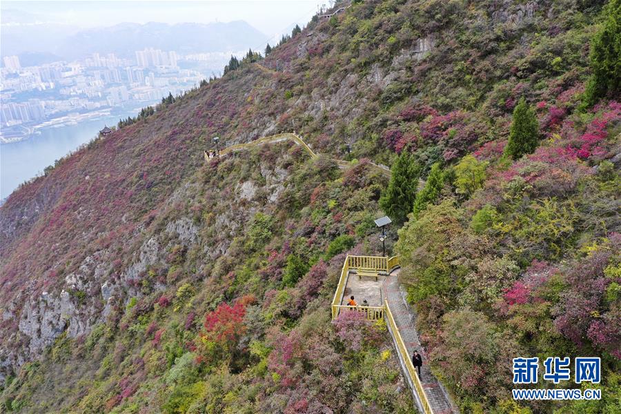 11月23日,游客在位于長江巫峽段的巫山文峰景區(qū)游覽。初冬時(shí)節(jié),位于重慶巫山縣境內(nèi)的長江巫峽段呈現(xiàn)出一江碧水東流、兩岸層林盡染的秀美景象。新華社記者王全超攝