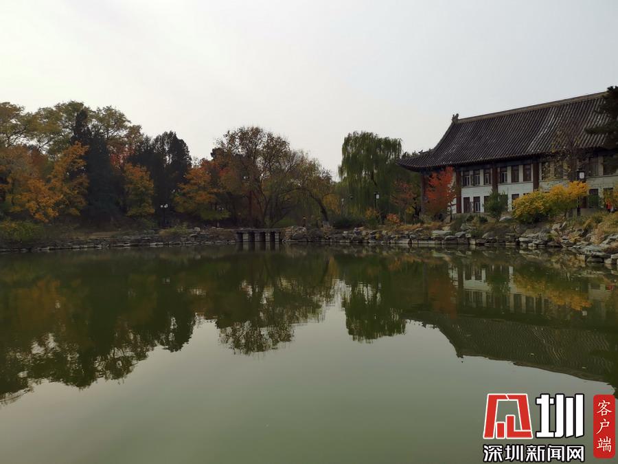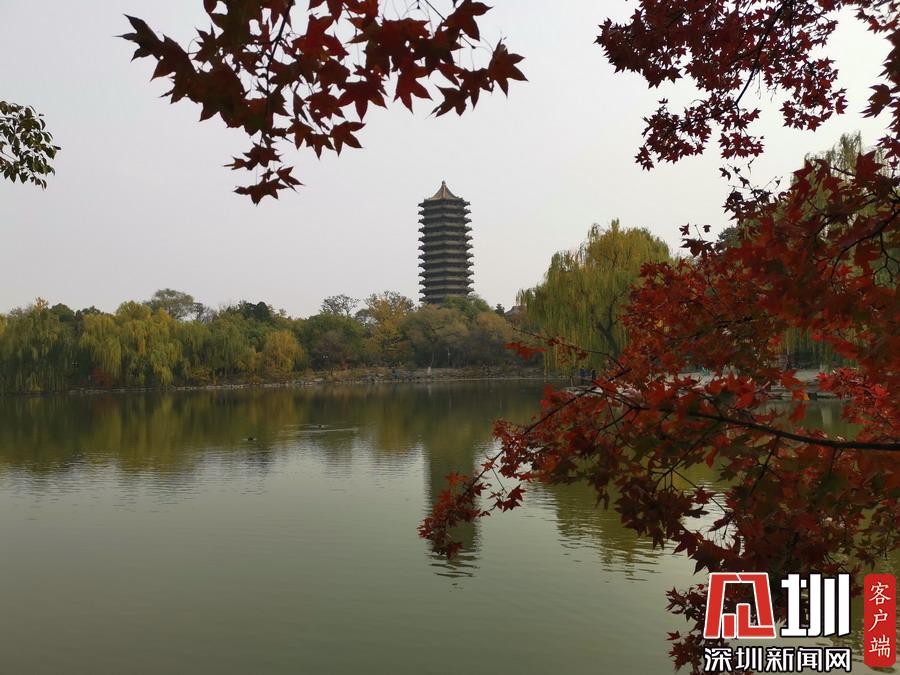 未名湖畔紅葉多姿、美麗寧?kù)o。