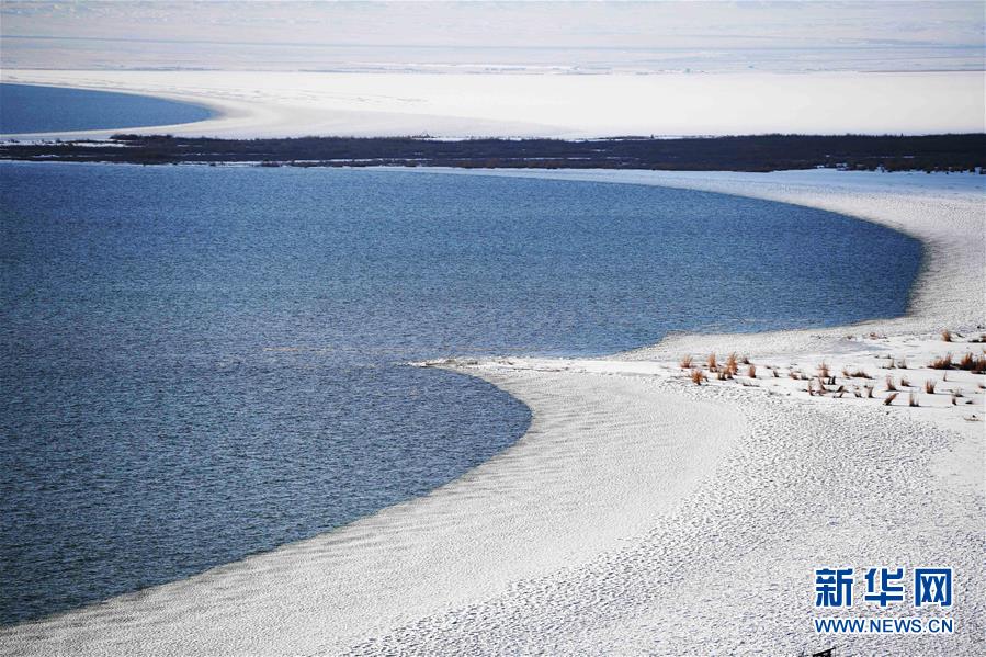 11月26日拍攝的新疆福海縣烏倫古湖海上魔鬼城景區(qū)美景。福??h烏倫古湖海上魔鬼城景區(qū)位于新疆阿勒泰地區(qū)福??h吉力湖東岸,有著獨特的雅丹地貌和水域景觀,是當?shù)刂穆糜蝿俚亍P氯A社記者沙達提攝
