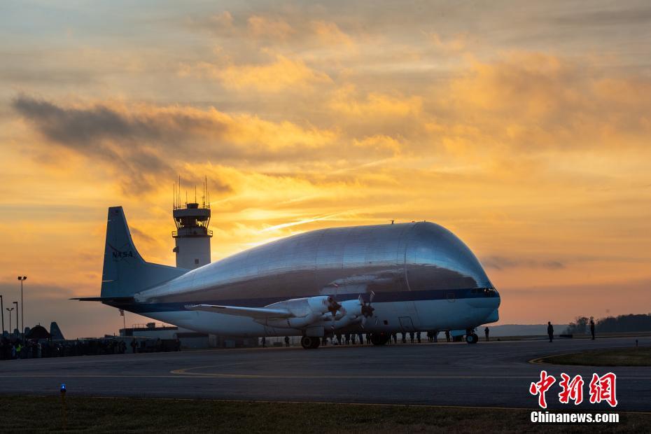 當?shù)貢r間11月25日清晨,美國宇航局(NASA)最大的運輸機“超級孔雀魚”搭載“獵戶座”宇宙飛船及設備,從佛羅里達州肯尼迪航天中心出發(fā),抵達俄亥俄州曼斯菲爾德拉姆機場,為“阿爾特彌斯”登月計劃作準備。圖片來源:視覺中國