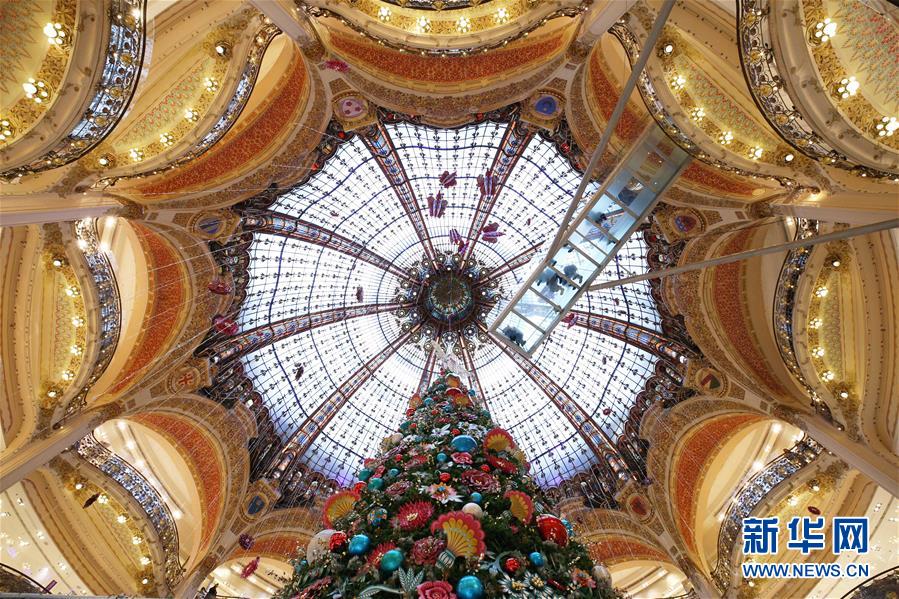 這是11月14日在法國巴黎老佛爺百貨公司拍攝的巨型圣誕樹。 近日,法國巴黎老佛爺百貨公司立起巨型圣誕樹,璀璨的燈光和精美的造型設計吸引了眾多市民和游客前來參觀。人們還可以在商場三樓處踏上高16米、長8米的玻璃走廊,與圣誕樹“親密接觸”。 新華社記者高靜攝