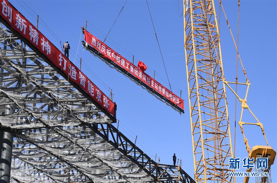 10月17日,工作人員在吊裝最后一組鋼梁。新華社記者張晨霖?cái)z
