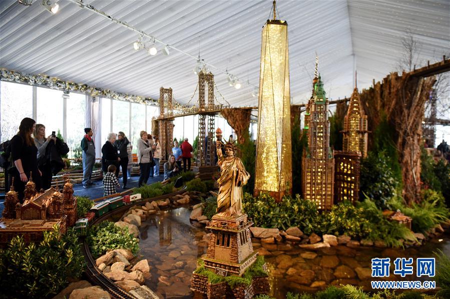 紐約植物園節(jié)日小火車展是紐約冬季傳統(tǒng)活動之一,迄今已舉辦28屆。今年的小火車展從2019年11月23日持續(xù)至2020年1月26日。各式火車模型穿行在用樺樹皮、橡果、肉桂條等天然材料制成的175個(gè)紐約經(jīng)典地標(biāo)微縮模型中,為游客帶來歡樂的節(jié)日氣氛。