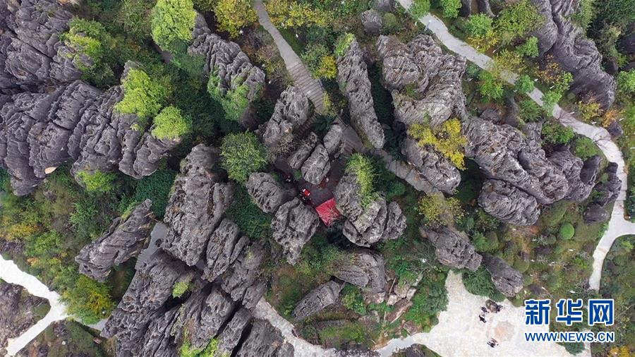 這是云南石林彝族自治縣黑石箐石林景觀(11月28日無(wú)人機(jī)拍攝)。新華社記者胡超攝