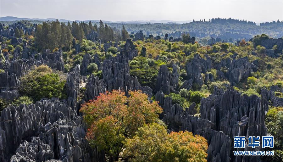 11月28日,游客在石林景區(qū)游覽(無人機(jī)拍攝)。新華社記者江文耀攝