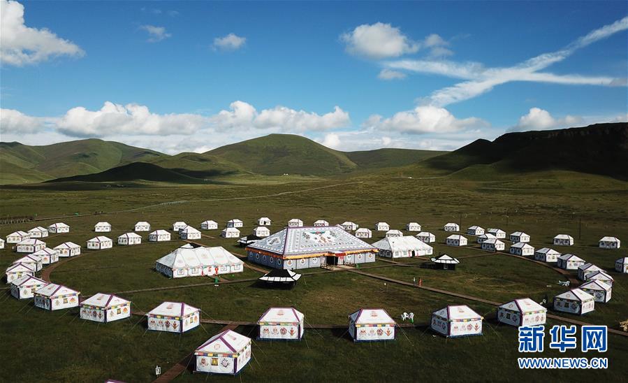 甘肅甘南藏族自治州碌曲縣尕海鎮(zhèn)尕秀村帳篷城度假區(qū)(2018年8月10日無人機拍攝)。新華社記者陳斌攝