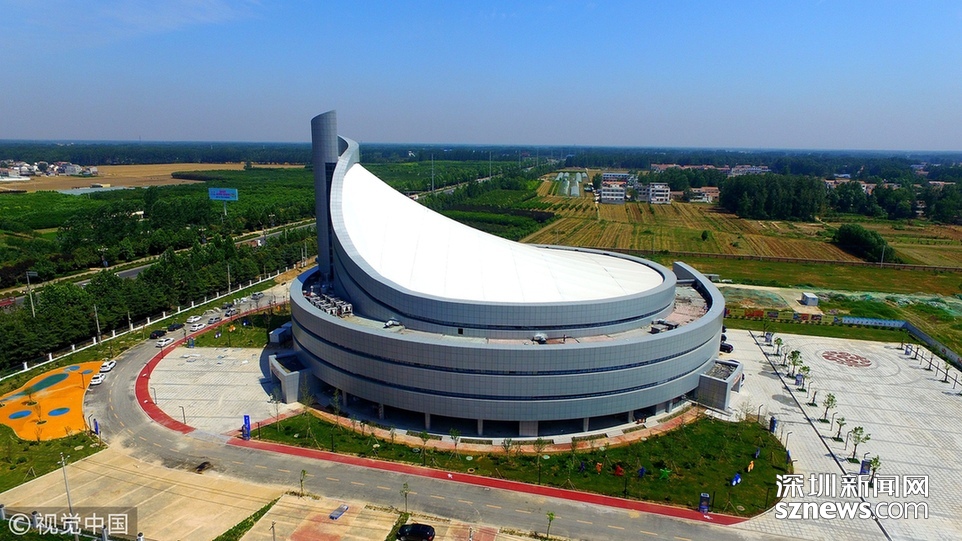 該體育館建筑外觀為圓形,分四層,有上下兩部分組成,市民稱酷似一個石磨盤。