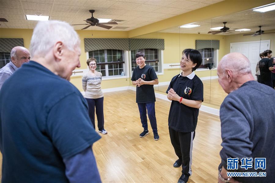 陳思坦的夫人林旭在位于美國紐約長島的一所社區(qū)老年活動中心指導(dǎo)老人練習(xí)太極(11月20日攝)。這里是陳思坦夫婦開設(shè)的一個公益教學(xué)項目。11月的紐約已進(jìn)入初冬,位于美國紐約長島的思坦太極武術(shù)中心依然一片紅火景象,學(xué)員們從5歲的孩童到80多歲的老人,操練著太極拳、太極劍、長拳等武術(shù)招式。這里的主人陳思坦、林旭夫婦,也從早忙到晚,精心指導(dǎo)每一位學(xué)員的一招一式。6歲習(xí)武,22歲成為中國全國冠軍,26歲獲得首個世界冠軍……直到30歲退役,陳思坦在運動員生涯中曾獲得過32次國內(nèi)外各類武術(shù)大賽冠軍。36歲那年,懷著以太極拳和中國武術(shù)為媒介向世界推廣中國文化的夢想,陳思坦到美國紐約尋找新的舞臺。經(jīng)過十多年的艱苦打拼,陳思坦夫婦目前在紐約長島、法拉盛和曼哈頓都開設(shè)了長期的課程,思坦太極注冊在編的各個年齡段的學(xué)員近千人,有些“高徒”現(xiàn)在自己也開班授課,將太極推向更多地方。陳思坦夫婦現(xiàn)在思考更多的是如何將太極和武術(shù)推廣給更多的美國人,并讓他們理解其中蘊(yùn)含的平衡、和諧的中國文化理念。他們創(chuàng)辦了紐約太極健身氣功活動日,在各類學(xué)校和社區(qū)開設(shè)太極或者武術(shù)課程,并利用美國的亞太裔文化月和多元文化節(jié)舉行武術(shù)和太極表演和體驗課程,讓更多美國人親眼看到、親身體會中國武術(shù)的魅力。從2011年起,他們還參與創(chuàng)辦了紐約太極大賽,如今已舉行九屆,吸引了美國、加拿大和中國國內(nèi)的隊伍參賽,影響力逐漸擴(kuò)大。新華社記者王迎攝