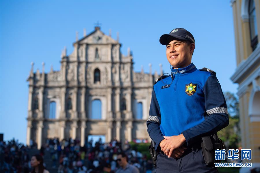 11月28日,澳門治安警察局旅游警察關天恒在大三巴牌坊附近巡邏,他已經(jīng)工作了2年,主要負責維持社會治安及解答游客問題。 新華社記者 張金加 攝
