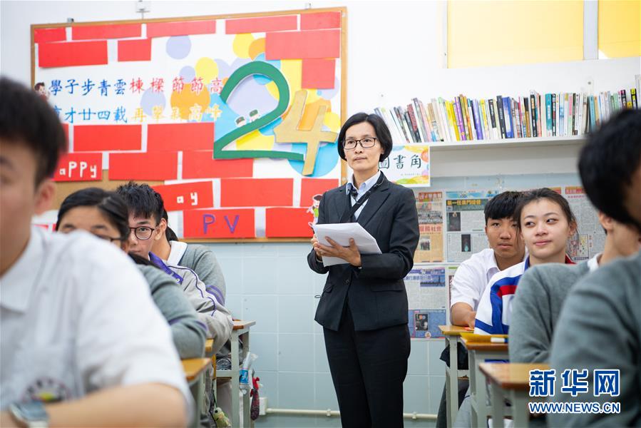 11月26日,澳門培華中學教師袁金淑在教室內(nèi),她已經(jīng)工作了20年,主要負責數(shù)學及公民教育。 新華社記者 張金加 攝
