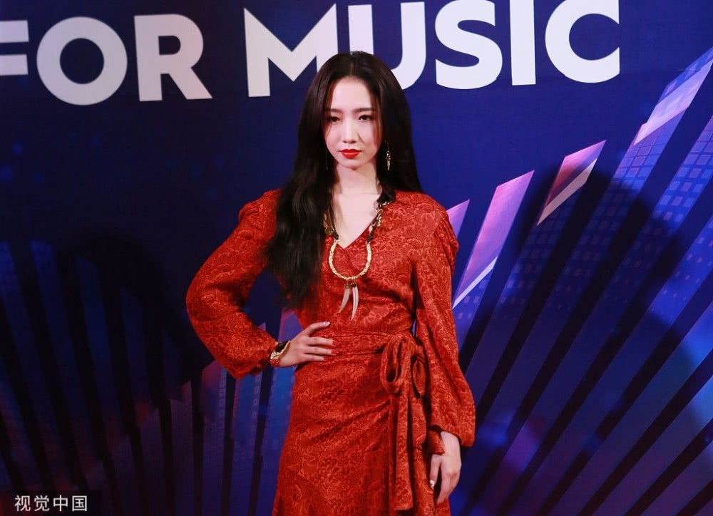 孟美岐身穿大紅色長(zhǎng)裙搭配波浪卷發(fā),大走港風(fēng)美艷動(dòng)人。
