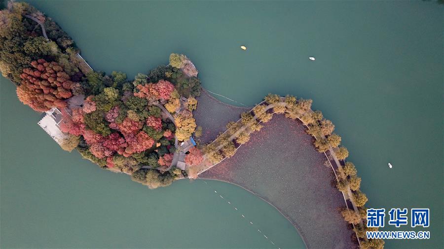 12月10日,小船在湖南烈士公園年嘉湖湖面行駛(無人機(jī)拍攝)。新華社記者陳澤國(guó)攝