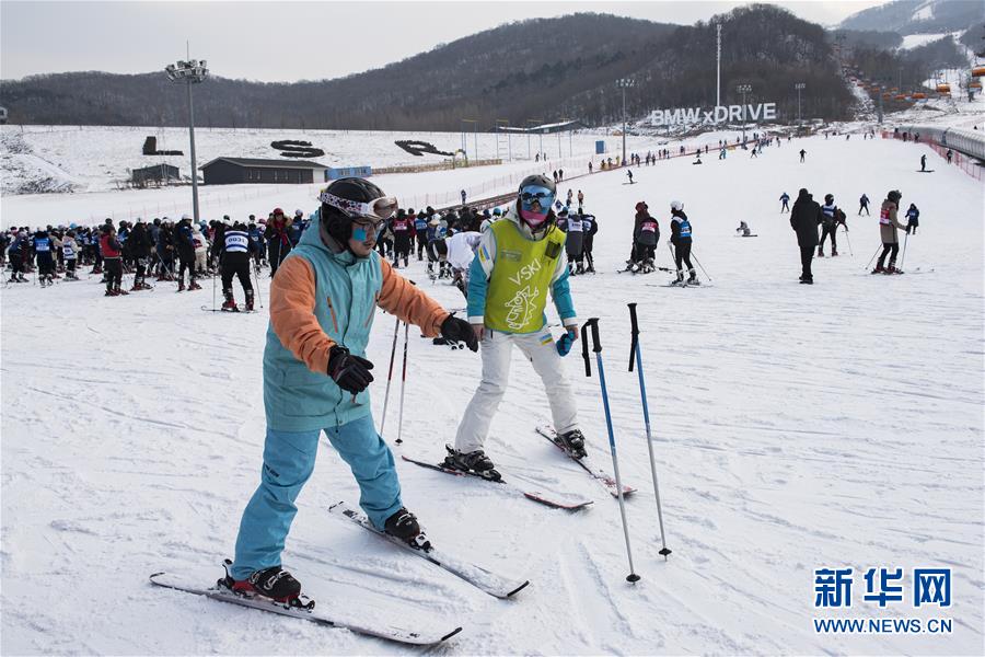 12月13日,滑雪初學(xué)者在吉林市萬科松花湖度假區(qū)練習(xí)滑雪技巧。新華社記者 張豪夫 攝
