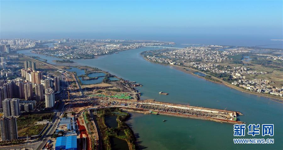 正在施工的??谖拿鳀|越江通道項(xiàng)目(12月14日無(wú)人機(jī)拍攝)。 新華社記者 郭程 攝