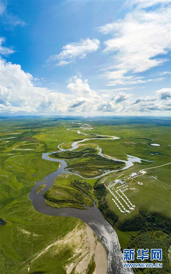 8月26日無(wú)人機(jī)拍攝的伊敏河(全景照片)。伊敏河流經(jīng)呼倫貝爾草原。新華社記者沈伯韓攝