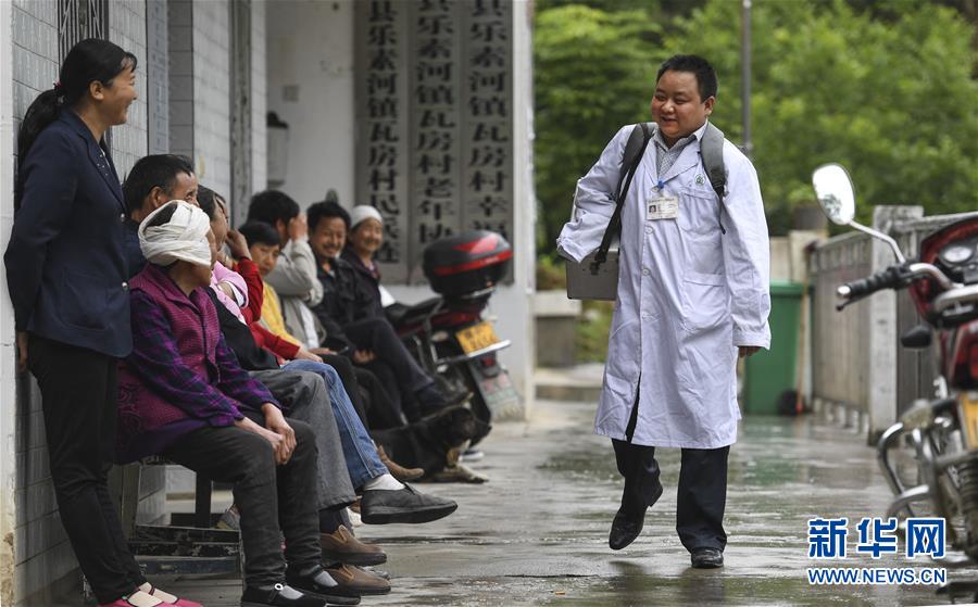 5月28日,何永清(右)一大早出門(mén)“送醫(yī)上門(mén)”后回到村衛(wèi)生室時(shí),門(mén)口排滿了等待就診的村民。何永清是陜西省略陽(yáng)縣樂(lè)素河鎮(zhèn)瓦房村衛(wèi)生室的一名村醫(yī),幼年時(shí)因車(chē)禍?zhǔn)ビ冶邸?006年7月從漢中市衛(wèi)校畢業(yè)后,他選擇回到山大溝深的秦嶺腹地故鄉(xiāng)工作。十多年來(lái),何永清堅(jiān)守在基層衛(wèi)生第一線,鄉(xiāng)親們親切地稱(chēng)他為“我們的獨(dú)臂村醫(yī)”。新華社記者陶明攝