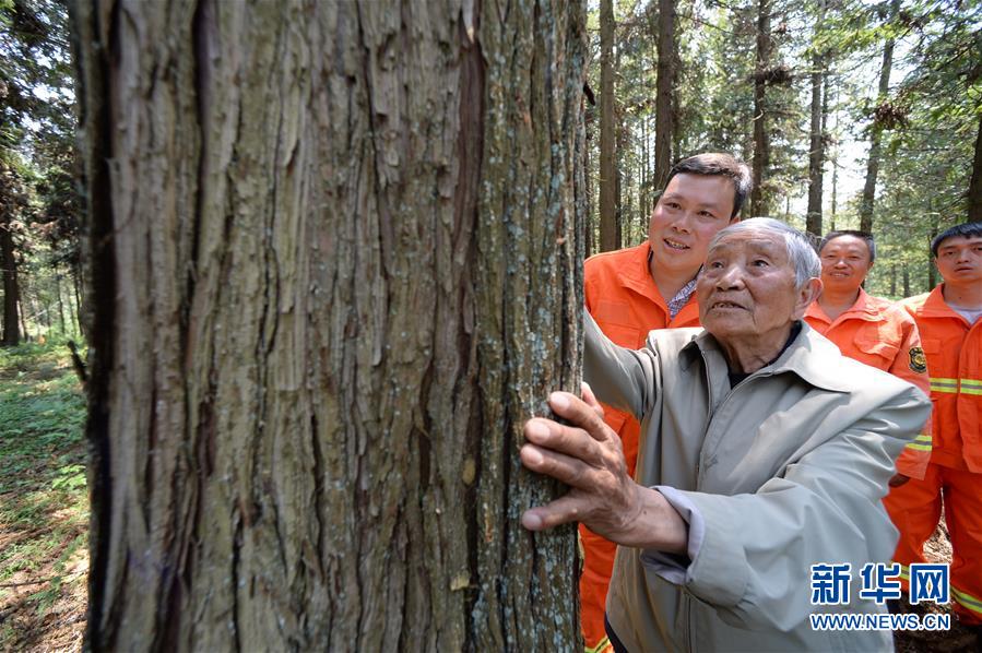 4月27日,在貴州省畢節(jié)市赫章縣平山國(guó)有林場(chǎng),李代關(guān)老人(前)在查看當(dāng)年和同事種的杉樹(shù)。今年88歲的李代關(guān)是貴州省畢節(jié)市赫章縣平山國(guó)有林場(chǎng)的一名退休職工,他1958年參加工作,成為一名林業(yè)工人,把畢生奉獻(xiàn)給了林業(yè)事業(yè)。在李代關(guān)的感召下,他的兒子和孫子都成為了護(hù)林員。經(jīng)過(guò)幾代林業(yè)工人的努力,截至2018年底,赫章縣平山鎮(zhèn)的森林覆蓋率已達(dá)66.7%。新華社記者楊楹攝