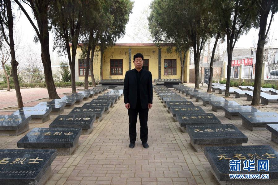 張景憲在張和莊烈士陵園內(nèi)(3月20日攝)。山東省菏澤市經(jīng)濟(jì)開(kāi)發(fā)區(qū)佃戶(hù)屯街道辦事處張和莊烈士陵園長(zhǎng)眠著136位在解放戰(zhàn)爭(zhēng)中犧牲的無(wú)名烈士。送英魂回家,讓英魂安息,是退伍軍人張景憲的一顆初心。11年來(lái),他寄出了一千多封信件,在退信、寄信、再退信、再寄信的反復(fù)中,持之以恒地為菏澤戰(zhàn)役中犧牲的136位英烈找“家”。截至目前,已有30位烈士找到了“家”。新華社記者王凱攝