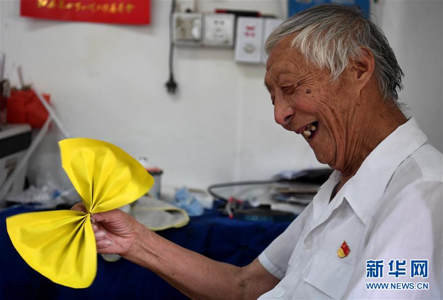 7月31日,葉連平在“留守未成年人之家”教室里欣賞學(xué)生剛剛送給自己的折紙禮物。92歲的退休教師葉連平生活在安徽省和縣烏江鎮(zhèn)卜陳村,村里的年輕人大多外出工作,留下的多是老人和孩子,家長(zhǎng)普遍沒(méi)有能力輔導(dǎo)孩子學(xué)習(xí)。2000年,原本是老師的葉連平?jīng)Q定創(chuàng)辦“留守未成年人之家”,為孩子們免費(fèi)補(bǔ)習(xí)英語(yǔ)。19年來(lái),葉連平幫助過(guò)的孩子超過(guò)1000名。新華社記者劉軍喜攝