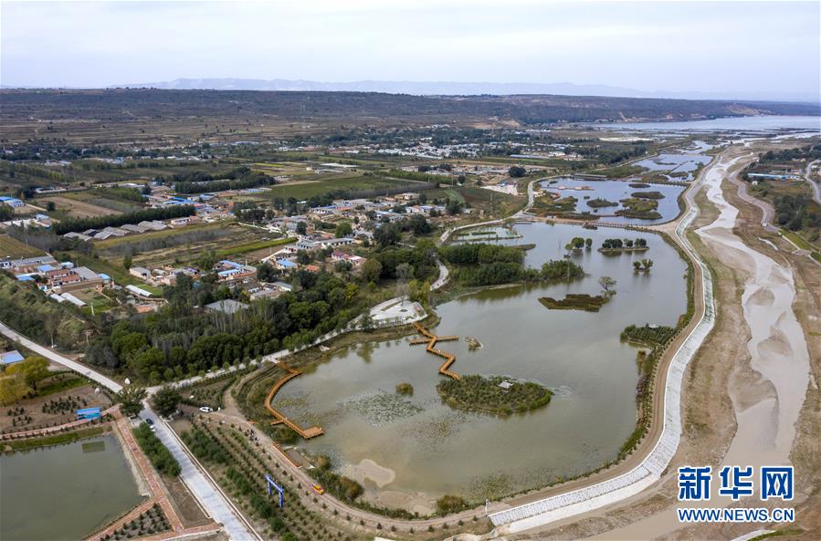 寧夏固原市原州區(qū)境內(nèi)的清水河流域在進(jìn)行防洪加固和人工濕地工程建設(shè)(10月10日無(wú)人機(jī)拍攝)。 新華社記者 馮開(kāi)華 攝