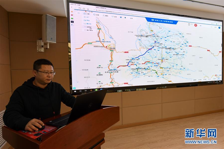 在寧夏固原市彭陽縣供水管理總站中控室,工作人員展示彭陽人飲工程管理系統(tǒng)(10月11日攝)。 新華社記者 馮開華 攝