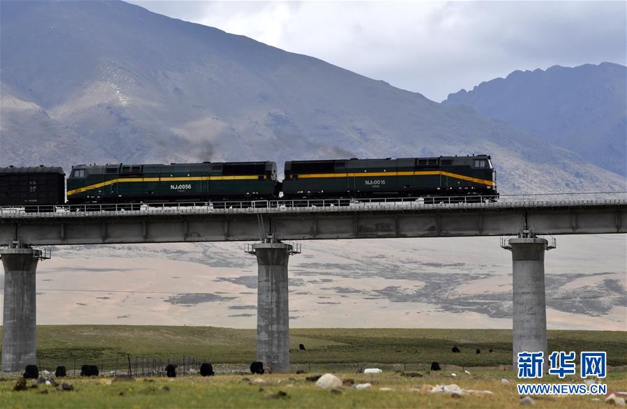 列車行駛在青藏鐵路上(6月10日攝)。新華社記者覺果攝