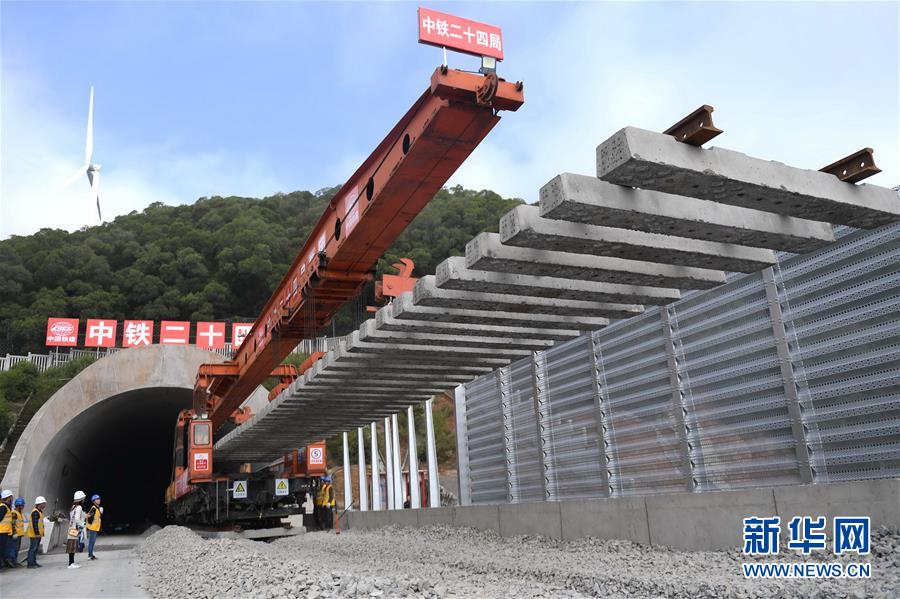 12月22日,中鐵二十四局工作人員在平潭海峽公鐵大橋鋪軌施工現(xiàn)場進(jìn)行鋪軌作業(yè)。當(dāng)日,總長為16.34公里的福平鐵路平潭海峽公鐵大橋鋪軌正式啟動。平潭海峽公鐵大橋是福州至平潭鐵路控制性工程,上層設(shè)計為時速100公里的六車道高速公路,下層為設(shè)計時速200公里的高鐵,大橋計劃2020年正式通車。新華社記者林善傳攝
