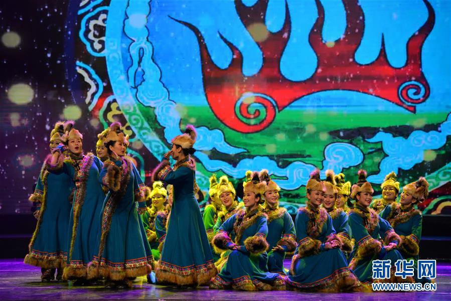 12月22日,演員在表演歌舞《敖魯古雅》。 當(dāng)日,冰雪之約——喜迎“十四冬”惠民文藝演出在呼倫貝爾大劇院舉行,為觀眾呈現(xiàn)一場“歌舞盛宴”。 新華社記者 徐欽 攝