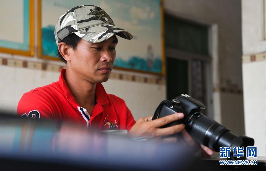 海南清瀾港省級自然保護(hù)區(qū)護(hù)林員呂詩陽在保護(hù)區(qū)內(nèi)的辦公室里查看自己拍攝的照片(12月17日攝)。 新華社記者楊冠宇攝