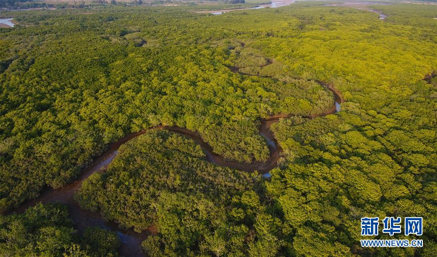海南東寨港國家級自然保護(hù)區(qū)內(nèi)的紅樹林(12月18日無人機(jī)拍攝)。 新華社記者楊冠宇攝