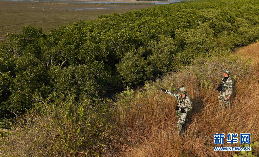海南儋州新英灣紅樹林市級自然保護區(qū)護林員陳正平(前)和同伴巡護保護區(qū)內的紅樹林(12月9日攝)。陳正平2010年開始在保護區(qū)工作,他將工作發(fā)展成愛好,廣泛參加各種培訓和業(yè)內交流。他在工作中拍到瀕危鳥類白肩雕出現在海南的照片,這刷新了海南省的鳥種記錄。新華社記者楊冠宇攝