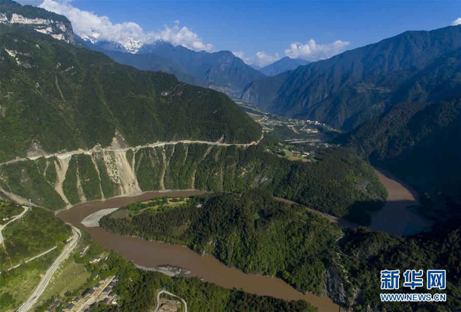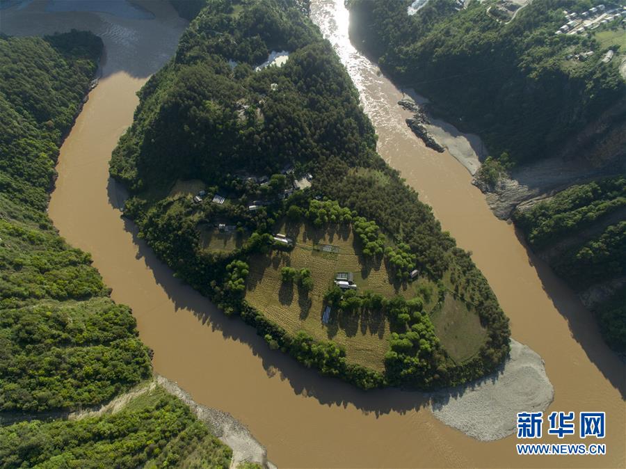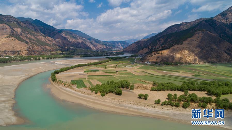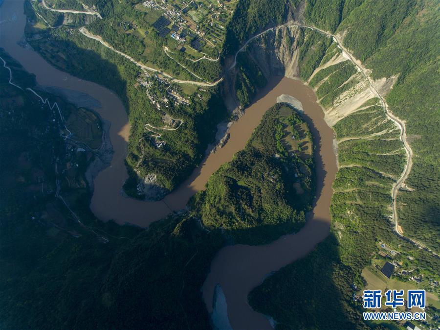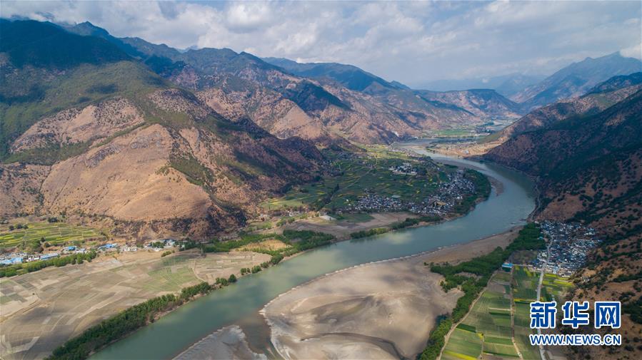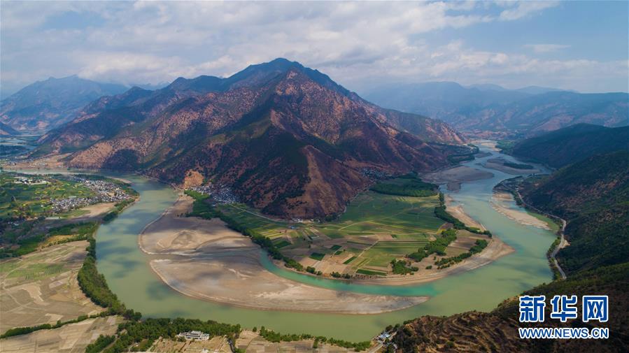 這是無人機拍攝的“長江第一灣”(3月17日攝)?!伴L江第一灣”位于云南省麗江市玉龍納西族自治縣石鼓鎮(zhèn),萬里長江從青藏高原奔騰而下,與瀾滄江、怒江一起在橫斷山脈的高山深谷中穿行形成并流的壯麗景觀。金沙江在麗江石鼓鎮(zhèn)突然以急轉(zhuǎn)彎轉(zhuǎn)向東北,形成一個宛若“V”字形的大轉(zhuǎn)彎,得名“長江第一灣”。春日里,“長江第一灣”江水青碧,美景迷人。新華社記者胡超攝