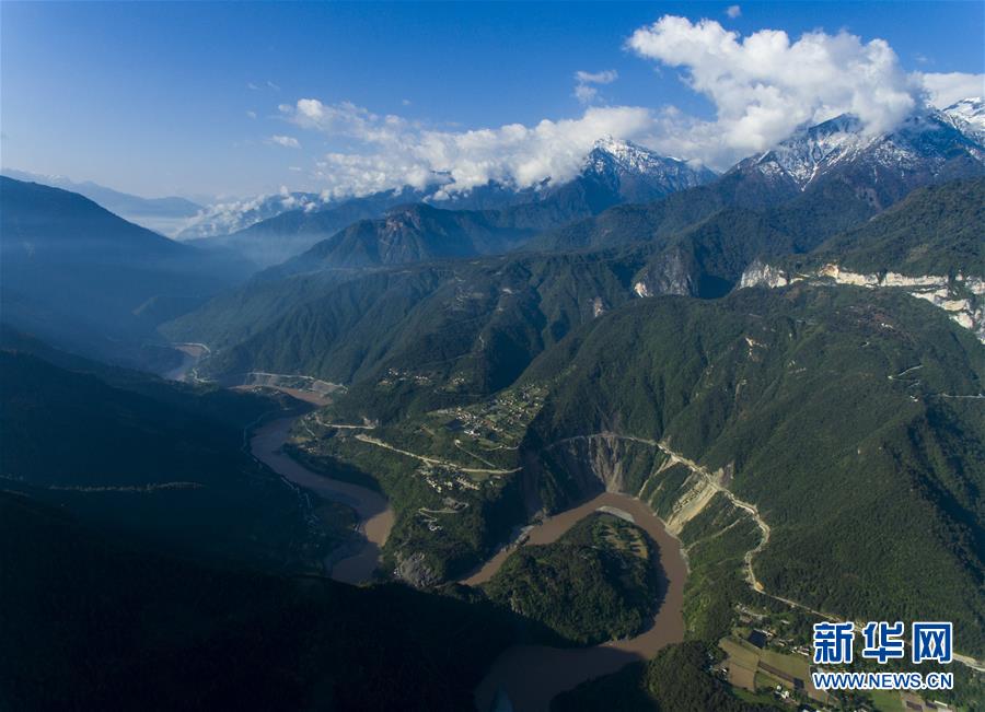 這是4月27日在云南省貢山獨龍族怒族自治縣丙中洛鎮(zhèn)拍攝的“怒江第一灣”(無人機拍攝)。新華社記者江文耀攝
