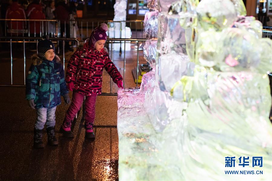 12月24日,在俄羅斯首都莫斯科,小朋友參觀冰雕藝術(shù)展。 哈爾濱冰雕藝術(shù)展24日在莫斯科開幕,現(xiàn)場(chǎng)展出了哈爾濱大劇院、防洪紀(jì)念塔以及莫斯科紅場(chǎng)建筑群等惟妙惟肖的冰雕作品,吸引眾多游客駐足拍照。 參加本次冰雕藝術(shù)展的十名冰雕師提前抵達(dá)莫斯科,以新中國(guó)成立70周年、中俄建交70周年、“一帶一路”倡議等為主題,為莫斯科民眾奉上了精美的新年禮物。 新華社記者 白雪騏 攝