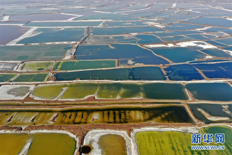 12月27日無人機拍攝的山西運城鹽湖。 冬日時節(jié),從空中俯瞰位于山西省運城市的鹽湖,景色如畫。 新華社記者曹陽攝