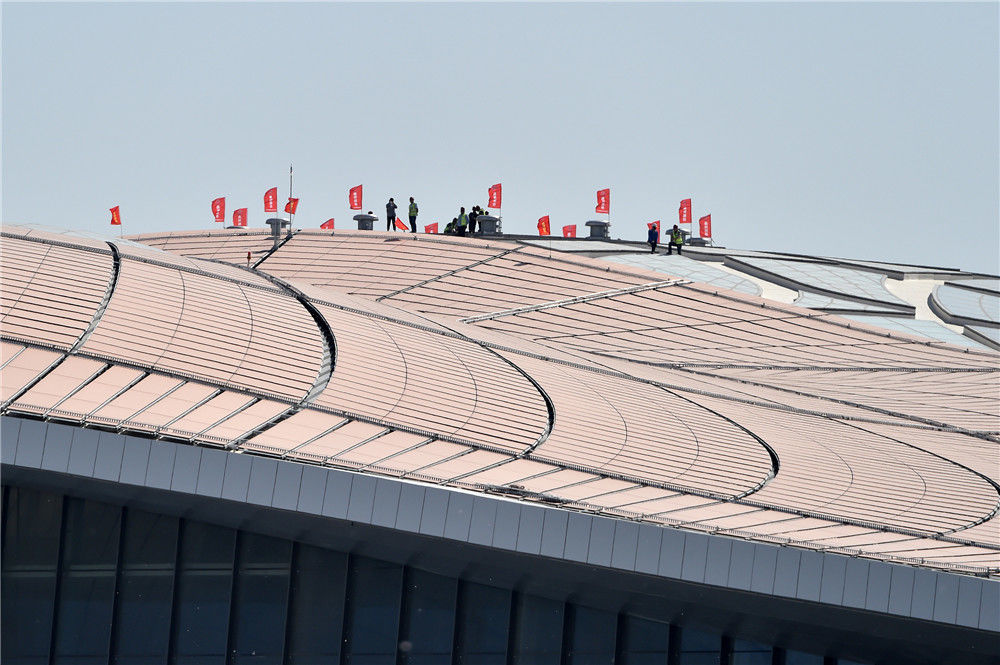 2019年5月13日,北京大興國際機場進行真機試飛。工人正在工作??蔀椋曈X中國