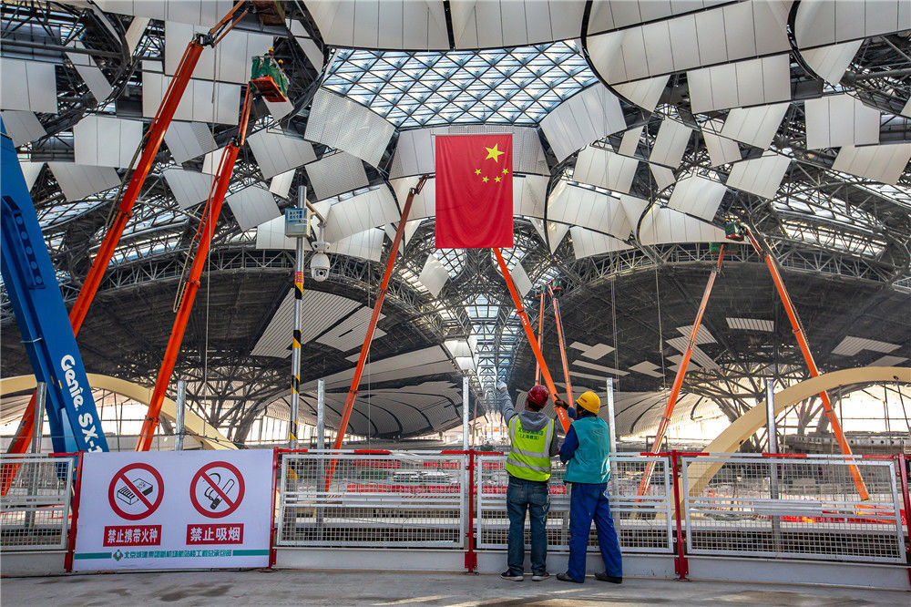 2018年10月30日,北京,大興新機(jī)場(chǎng)的建設(shè)者。周錦/視覺中國