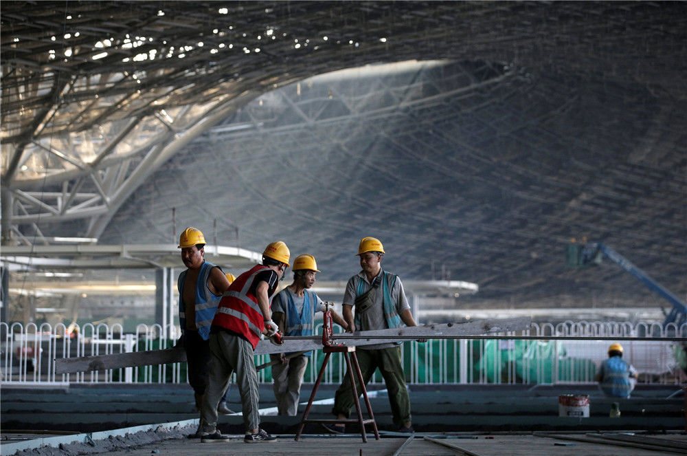 2018年8月30日,北京,北京市政府組織媒體參觀在建的大興國際機場。JASON LEE/視覺中國